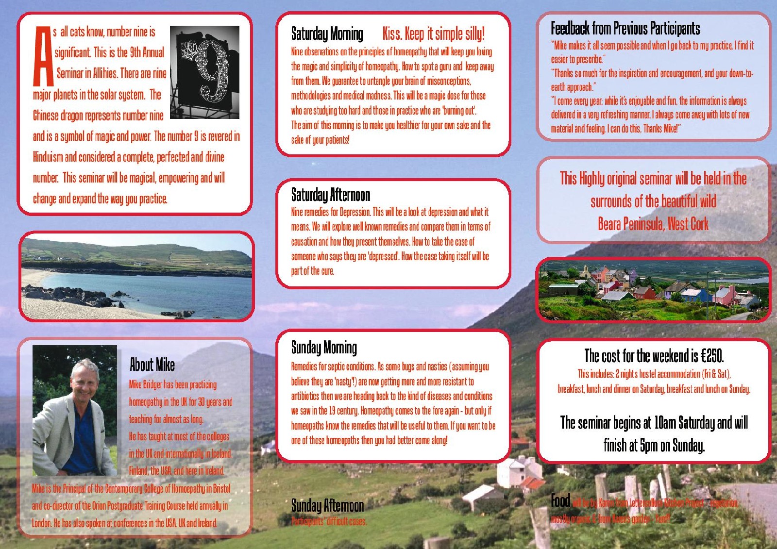 Looking for a short break in a beautiful setting in August? Why not join Mike Bridger in Allihies, West Cork for a weekend of homeopathy.